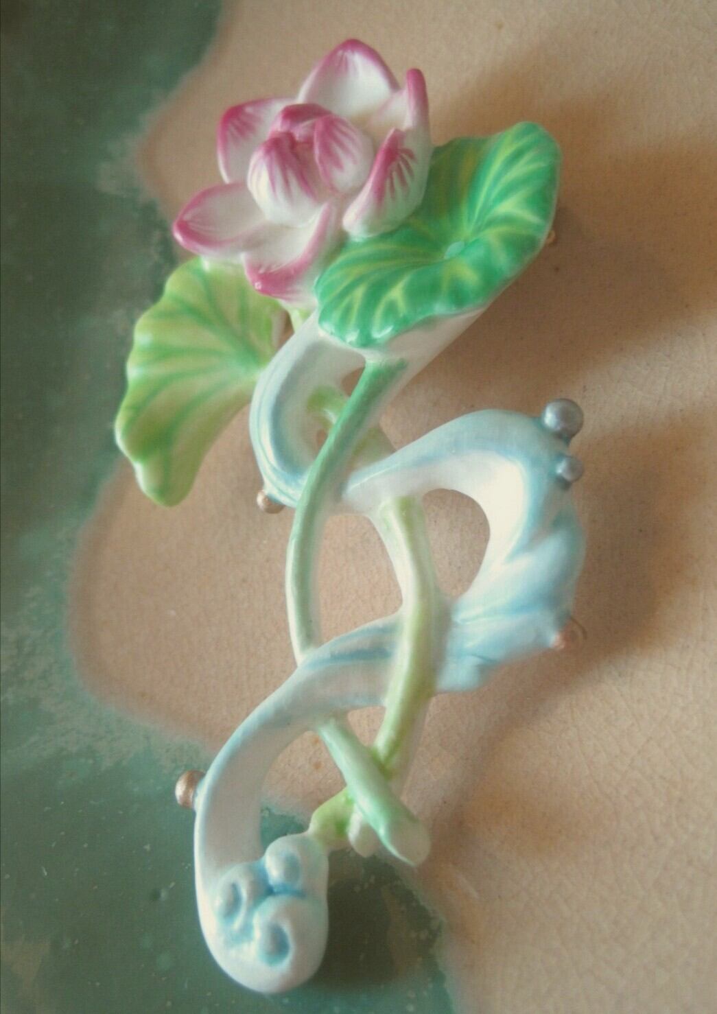 蓮に流水のブローチ*木彫り木製彫刻*ハンドメイド